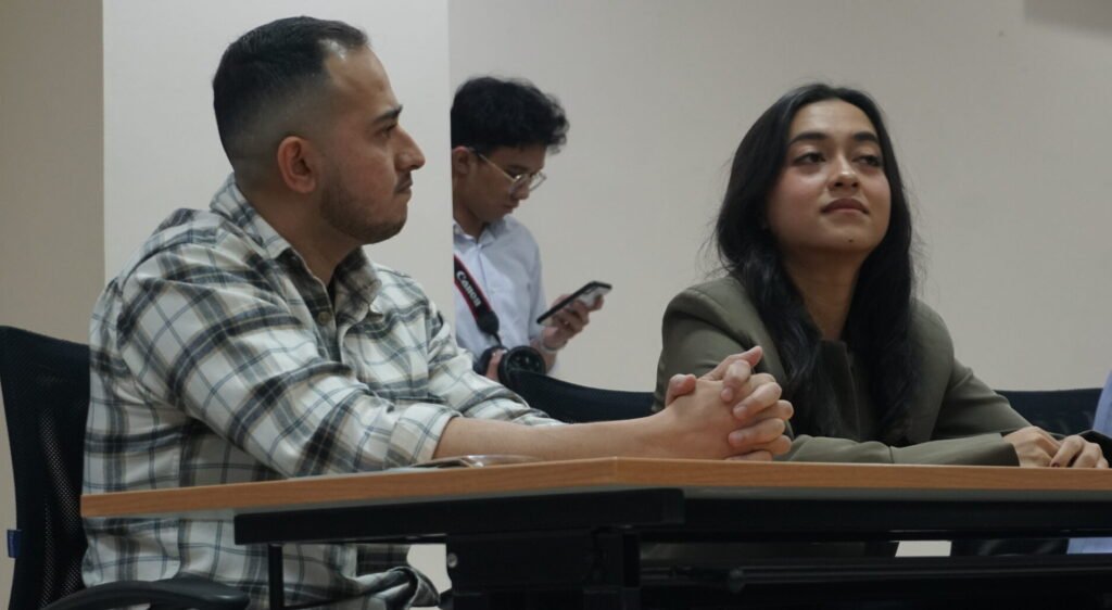 Orang tua anak J, Adam Harits dan Nesya saat mendengarkan putusan MDP. Foto: Mirza M. Bagaskara/Pedeo Project
