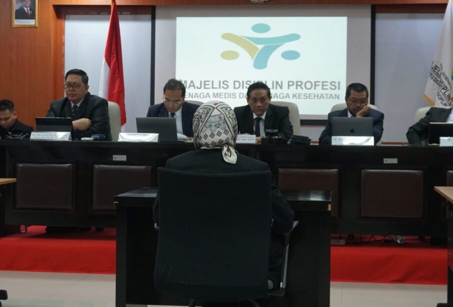 Tim Pemeriksa Disiplin Majelis Disiplin Profesi (MDP) membacakan putusan atas kasus dugaan malpraktik dokter P, Rabu (1/10/2025). Foto: Mirza M. Bagaskara/Pedeo Project