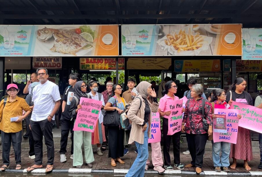 Sejumlah tokoh masyarakat sipil mendatangi Polda Metro Jaya sebagai bentuk aksi solidaritas untuk Delpedro cs. Foto: TAUD