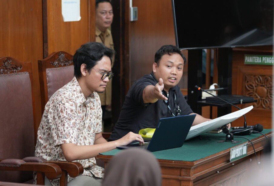 Kuasa hukum Muzaffar Salim, Abdul Rohim Marbun (kiri) dan M. Nabil Hafizhurrahman (kanan), di PN Jakarta Selatan, Selasa (21/10/2025). Foto: Dania/KontraS