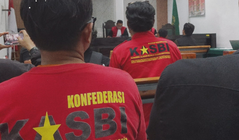 Anggota Kongres Aliansi Serikat Buruh Indonesia (KASBI) saat mengikuti persidangan PHI di Pengadilan Negeri (PN) Bandung. Foto: LBH Bandung