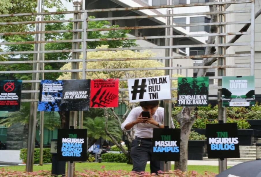 Aksi penolakan UU TNI oleh Koalisi Masyarakat Sipil di depan Mahkamah Konstitusi, 17 September 2025. Foto: Yasyri